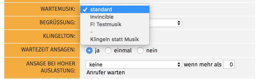 Innerhalb der Administration der Warteschlange ist dann die entsprechende Audiodatei als Wartemusik auswählbar.