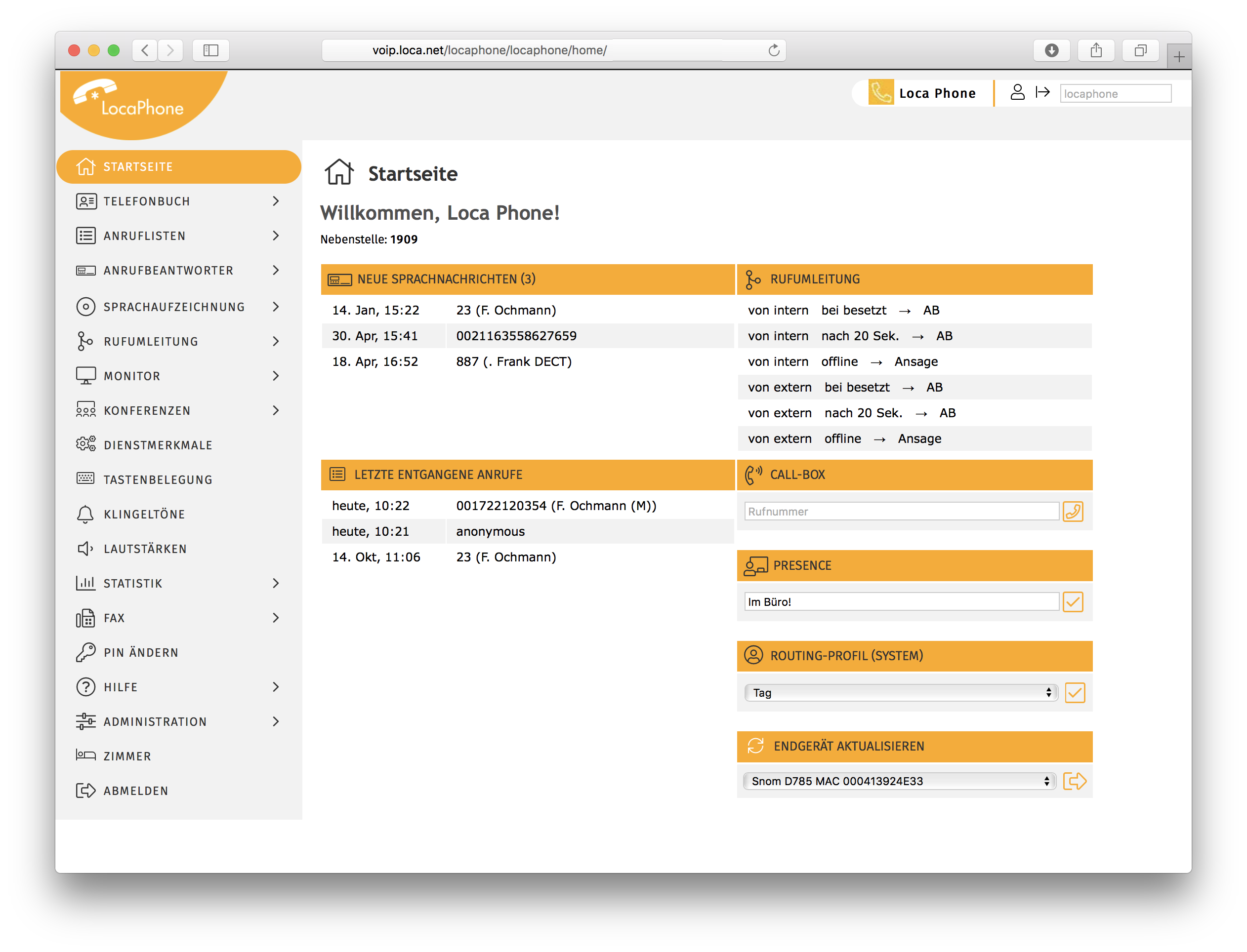 Die Systemlösung LocaPhone VoIP TK-System stellt dem Benutzer alle relevanten Telefonie-Funktionen in einer modernen und leicht zu bedienenden Webseite (Web-UI) bereit, die zur komfortablen Einstellung der Telefonie benötigt werden.