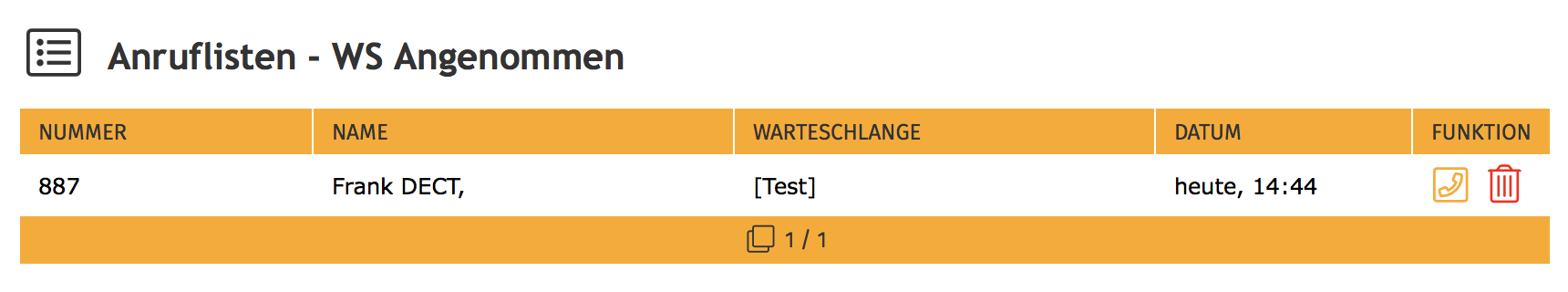 Diese Liste beinhaltet alle Anrufe, die über die Warteschlangen zum Benutzer vermittelt wurden, und die vom Benutzer angenommen wurden.