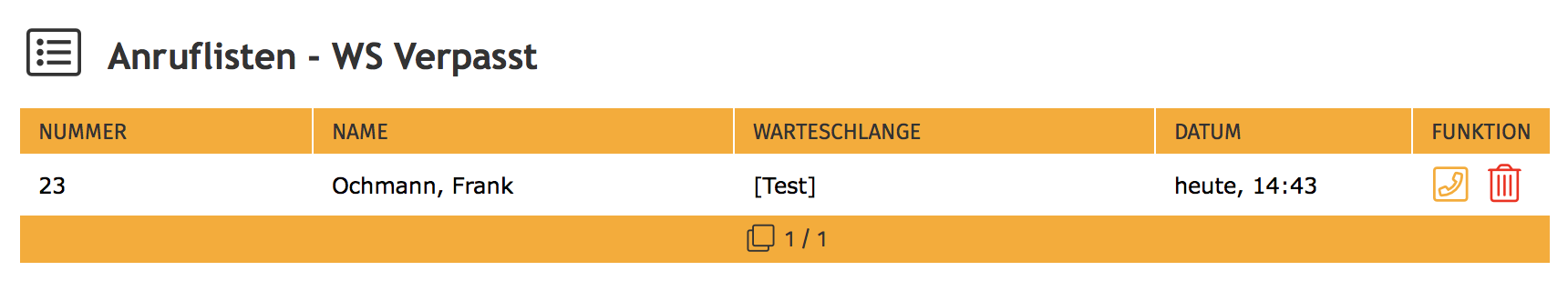 Diese Liste beinhaltet alle Anrufe, die über die Warteschlangen zum Benutzer vermittelt wurden, und die nicht vom Benutzer angenommen wurden.