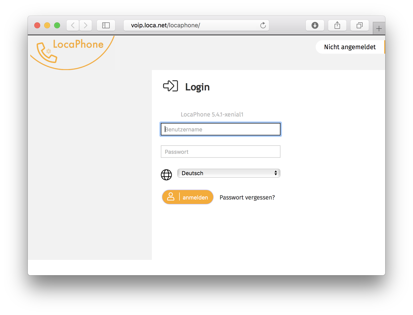 Anmeldung an der Bedienoberfläche
